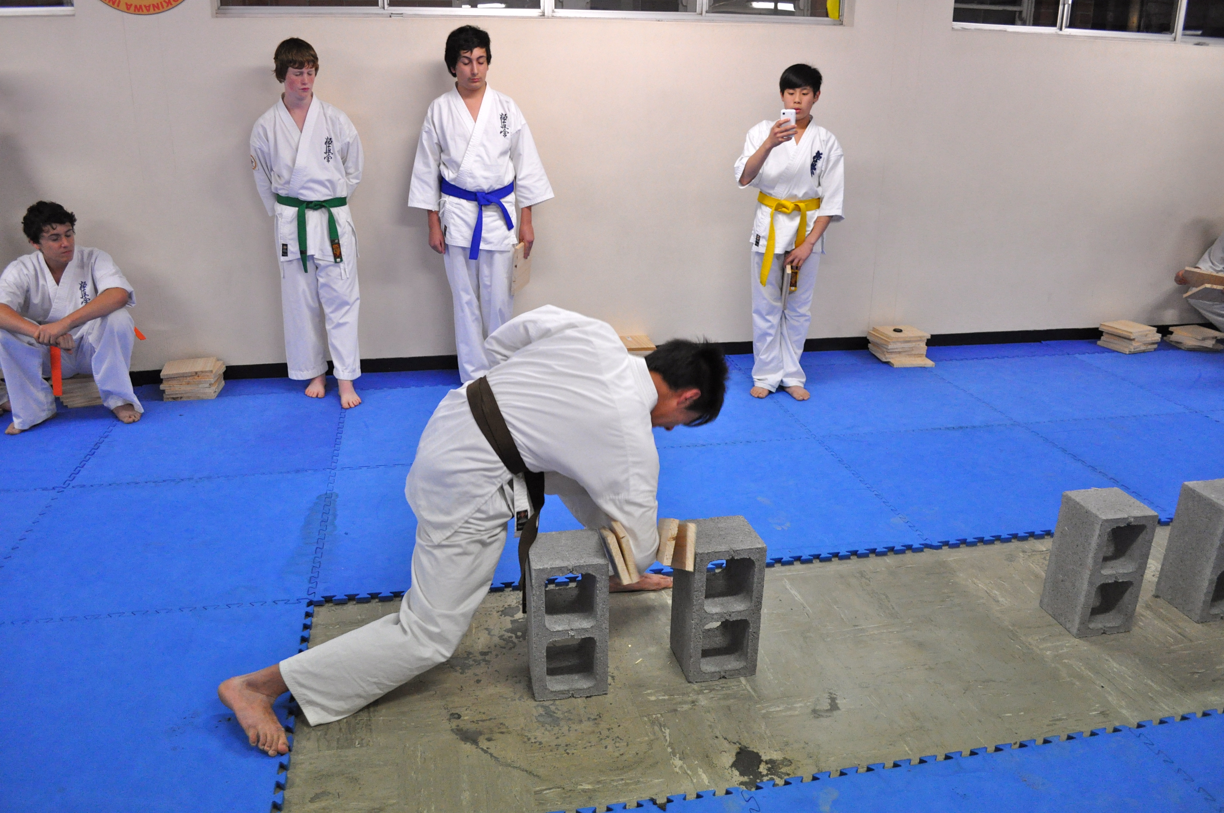 Previous Image Next Image Nick Cheng – Elbow Break Nicholas Cheng, 1st Kyu, performs a knifehand board break