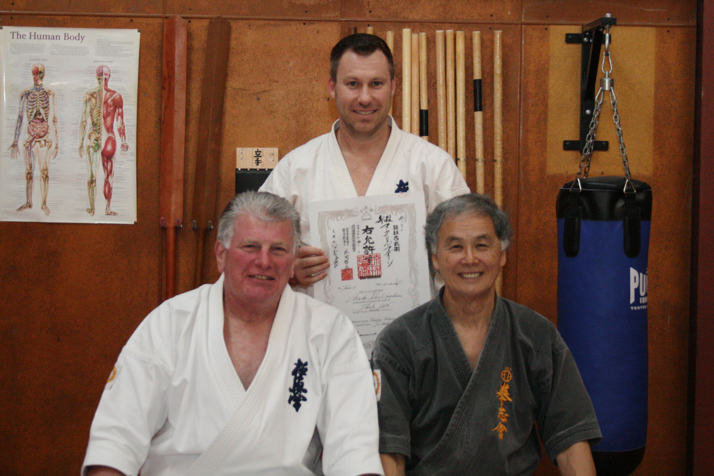 Previous Image Next Image Sensei Mark receives his 3rd Dan in Kobudo Shihan Lipman & Sensei Hokama with Sensei Mark