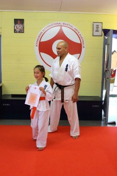 Previous Image Next Image AspleyDec2013Grading23 Sempai Rob James awards Eliza Bolger 10th Kyu Level 3