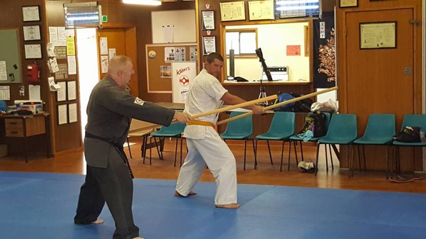 Sensei Paul teaching Mick the Bo.