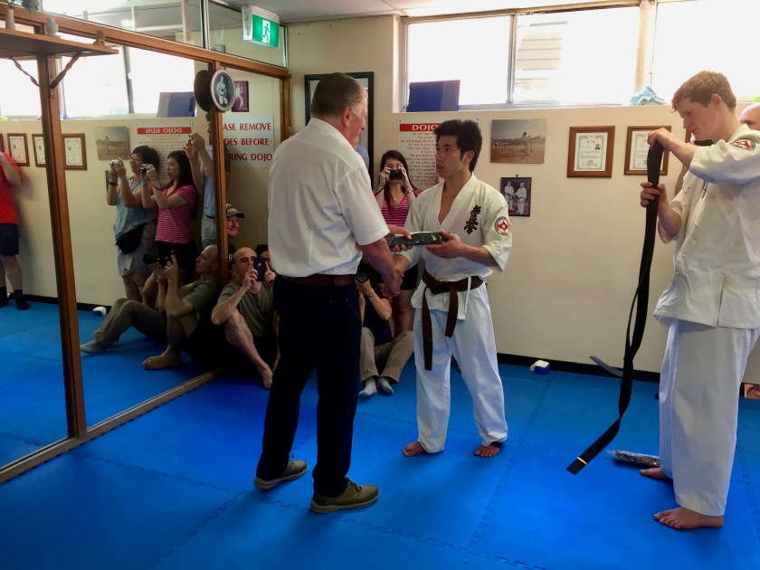 Shihan Howard awards Jono his Shodan.