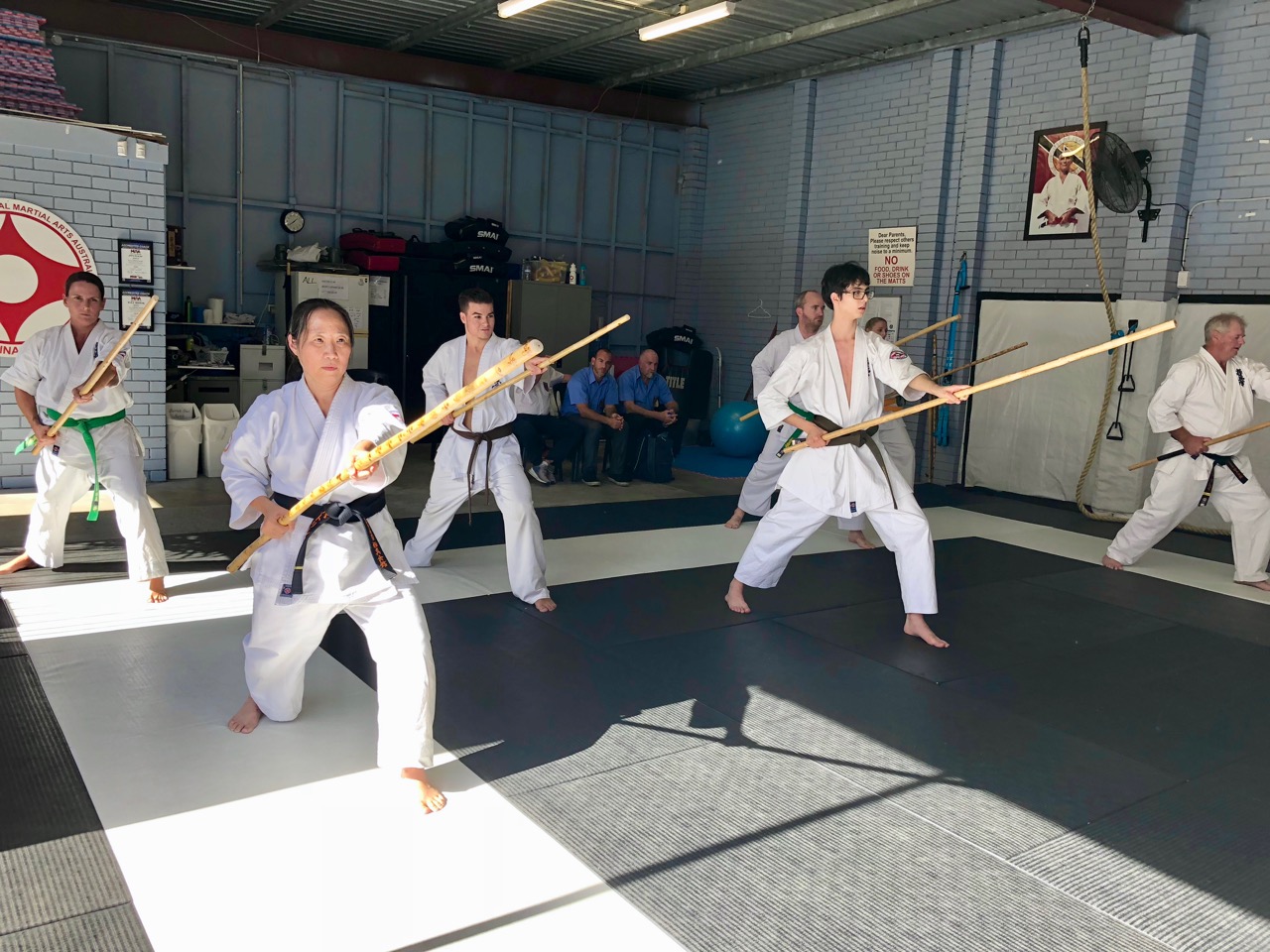 A Kobudo class was conducted after the grading for interested students. Sempai Alex took the group through the finer technical points of the Bo staff, focusing on basic strikes as well as the first exercise and Kihon kata.