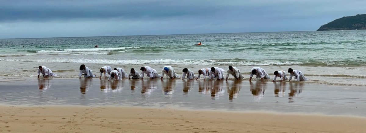 On the morning of Saturday March 22nd, Shihan Mark Shelmerdine and Shihan James Sidwell led a beach training session at Freshwater Beach in Sydney for students of Turramurra Dojo. Special guests included Sensei Mark Long from Taree Dojo and photographer Masumi Lipman.