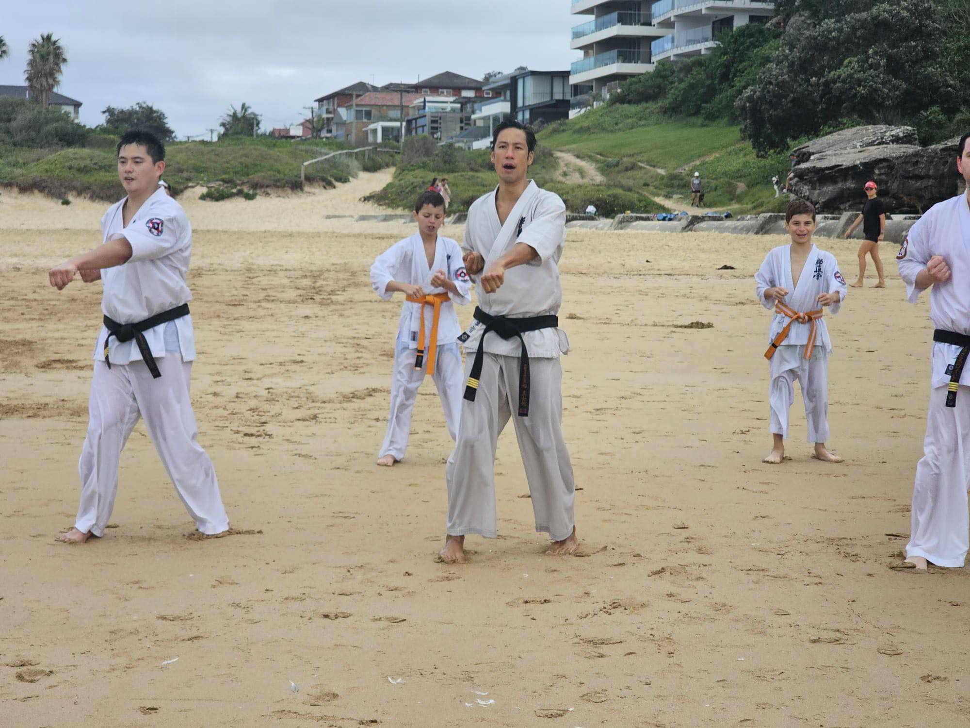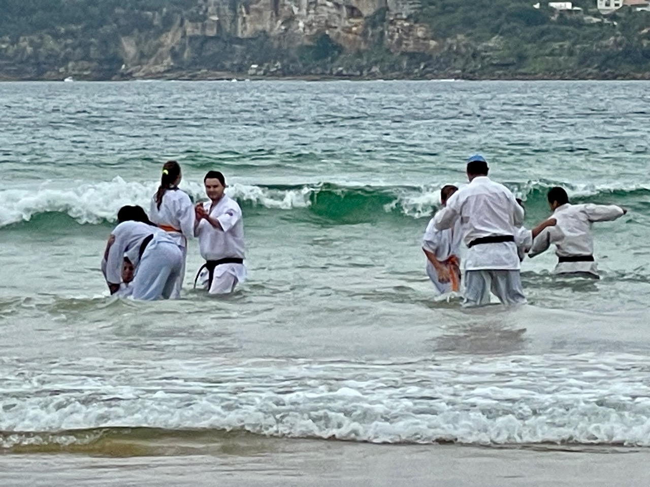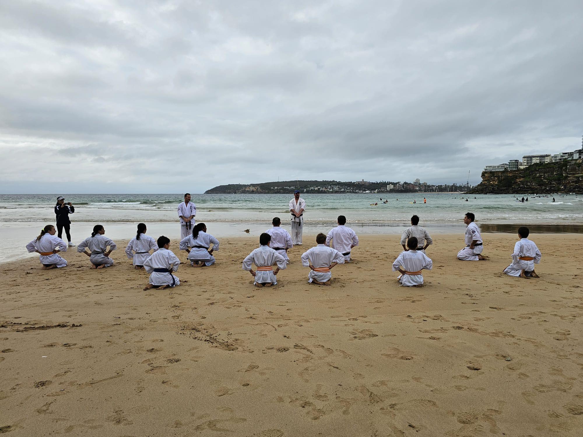 The training included fitness and basic training on the sand and in the waves, and kumite in the waves, finishing with some water wheel kicks.