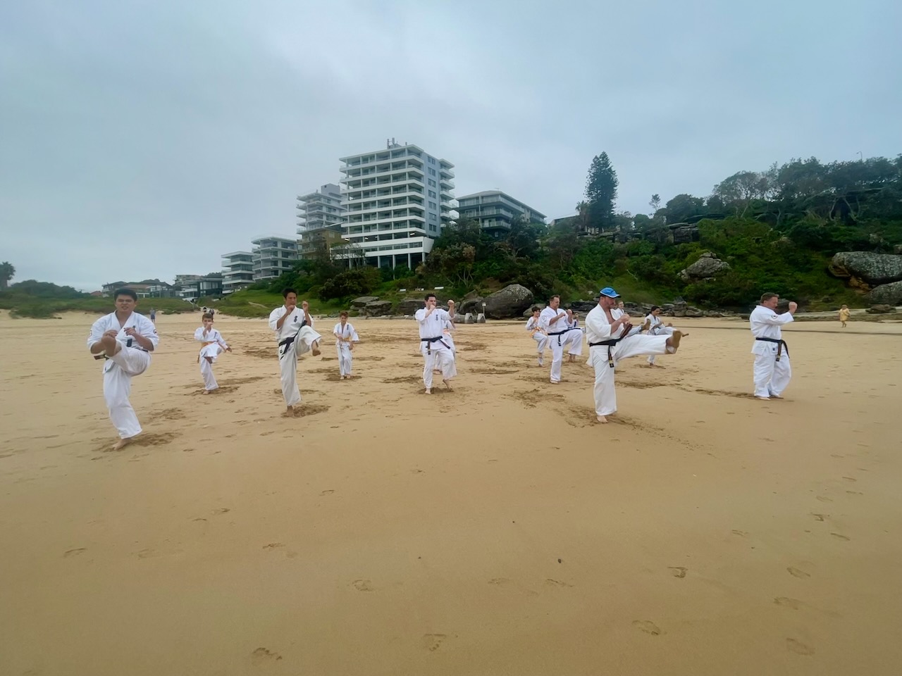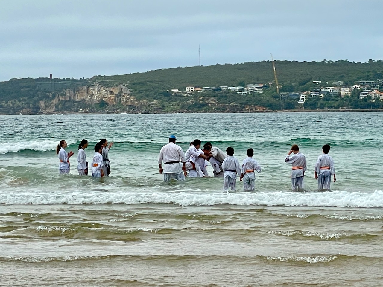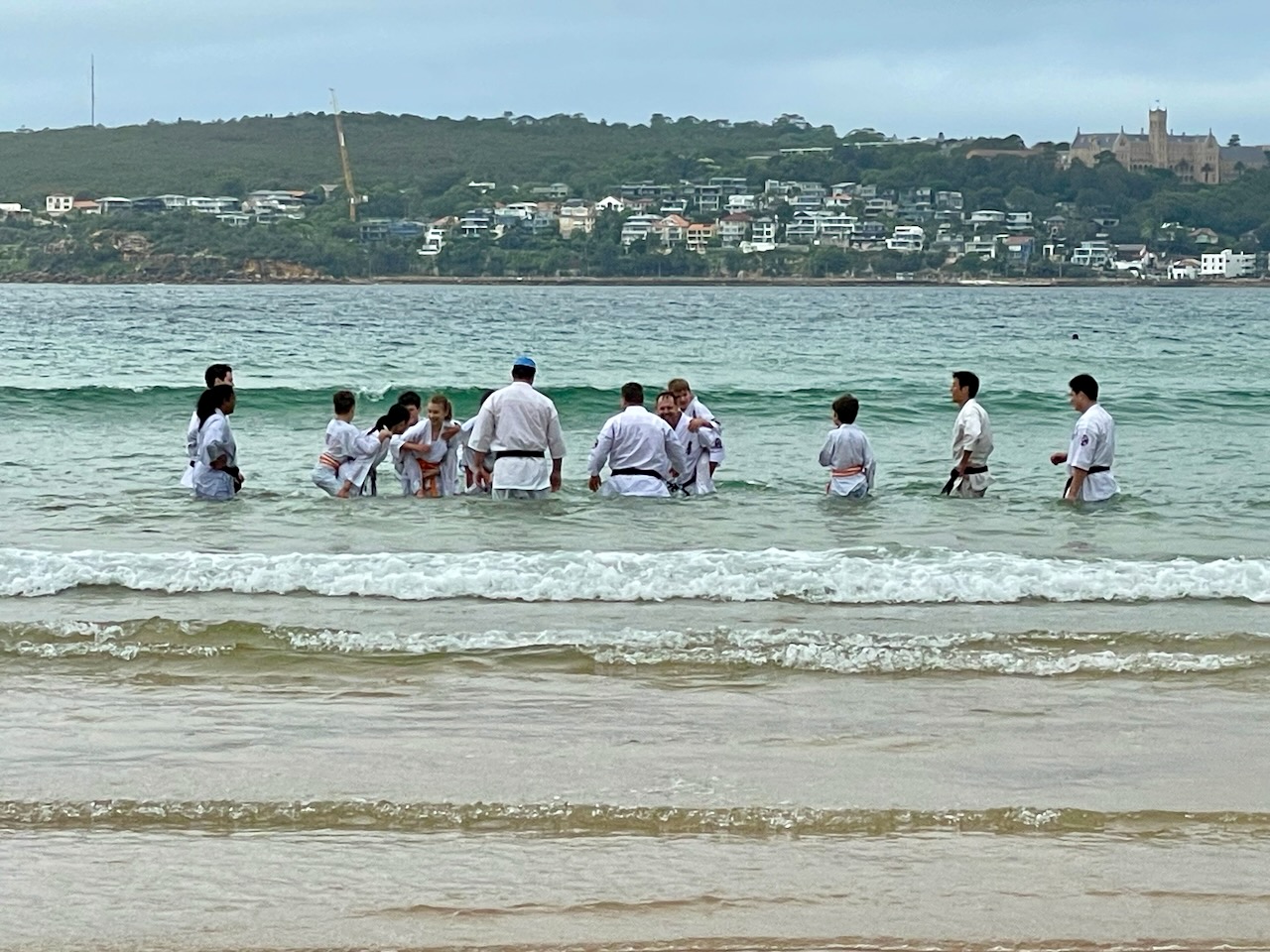 The training included fitness and basic training on the sand and in the waves, and kumite in the waves, finishing with some water wheel kicks.
