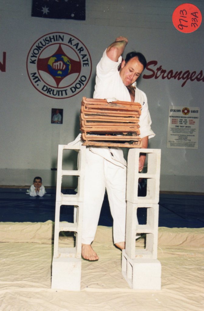 And at that tournament, Shihan Rick Cunningham demonstrates a roof tile break.