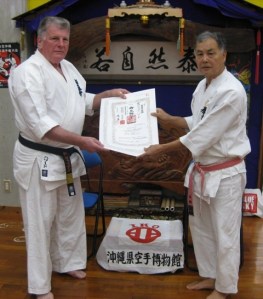 As a result of this trip I was made Sensei’s first Australian branch chief in Kobudo and was graded to Sandan (3rd Dan) in Kobudo. Shihan Cunningham was also graded to 3rd Dan in Kobudo. For us this was a most unexpected end to this trip to Okinawa and one which we considered to be a great honour.