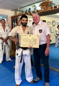 Sempai Ben Brady receives his Shodan grade from Hanshi Howard Lipman