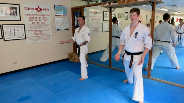 Sempai Jason Lambe leads the grading.